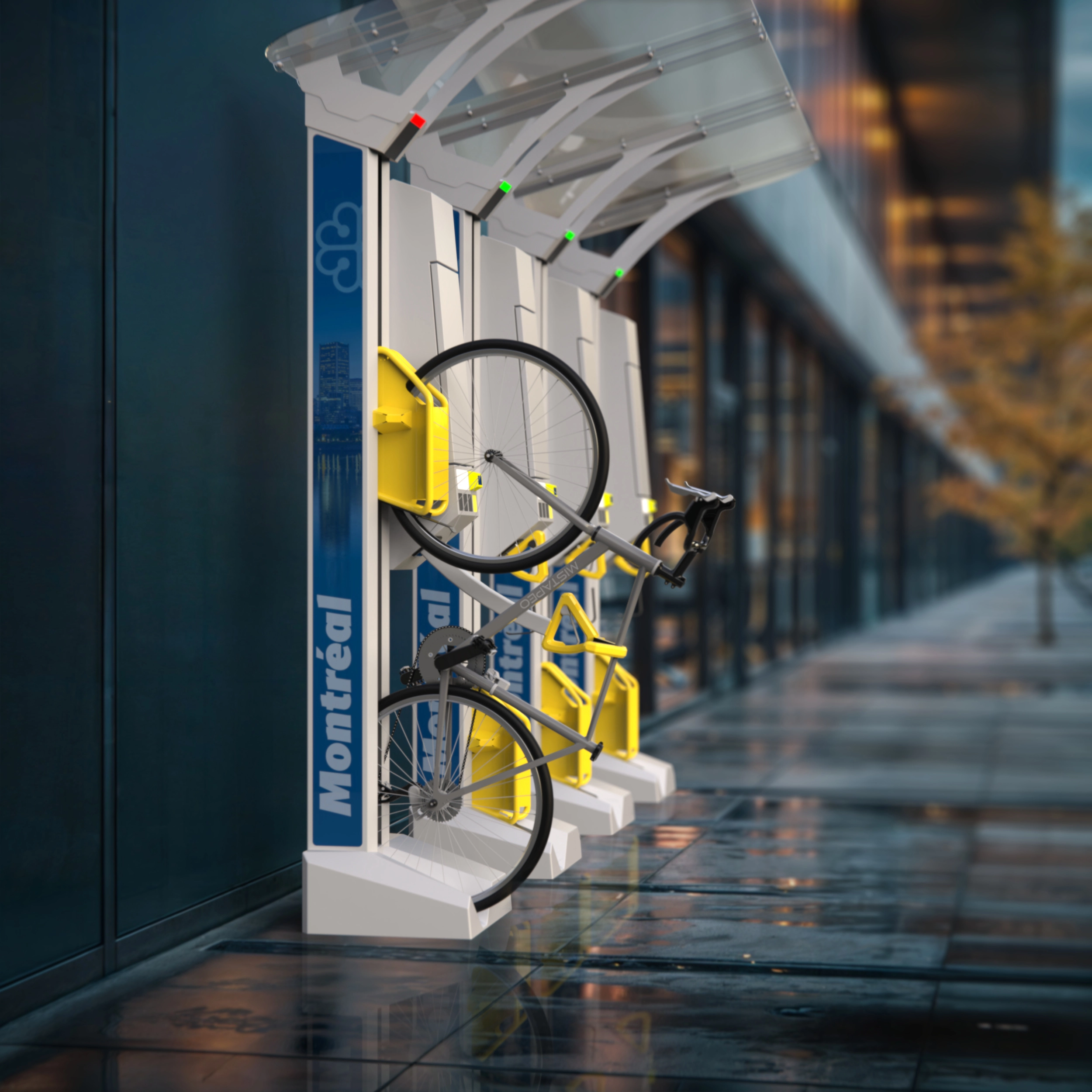 Facile et rapide à installer, un BiP est beaucoup moins encombrant que des grosses boîtes de vélo fermées. Trois espaces de stationnements pour voiture standard sur une rue peuvent aisément accueillir 16 BiP sécurisés, bien situés, faciles d’utilisation, pouvant recharger les batteries des VAÉ et dotés d’alarmes et de mécanismes de sécurité pour les utilisateurs. Un coin de mur sur un trottoir peut accueillir autant de « VéloGard-4 », (quatre BiP assemblés) que désirés sans pour autant encombrer l’espace piéton.